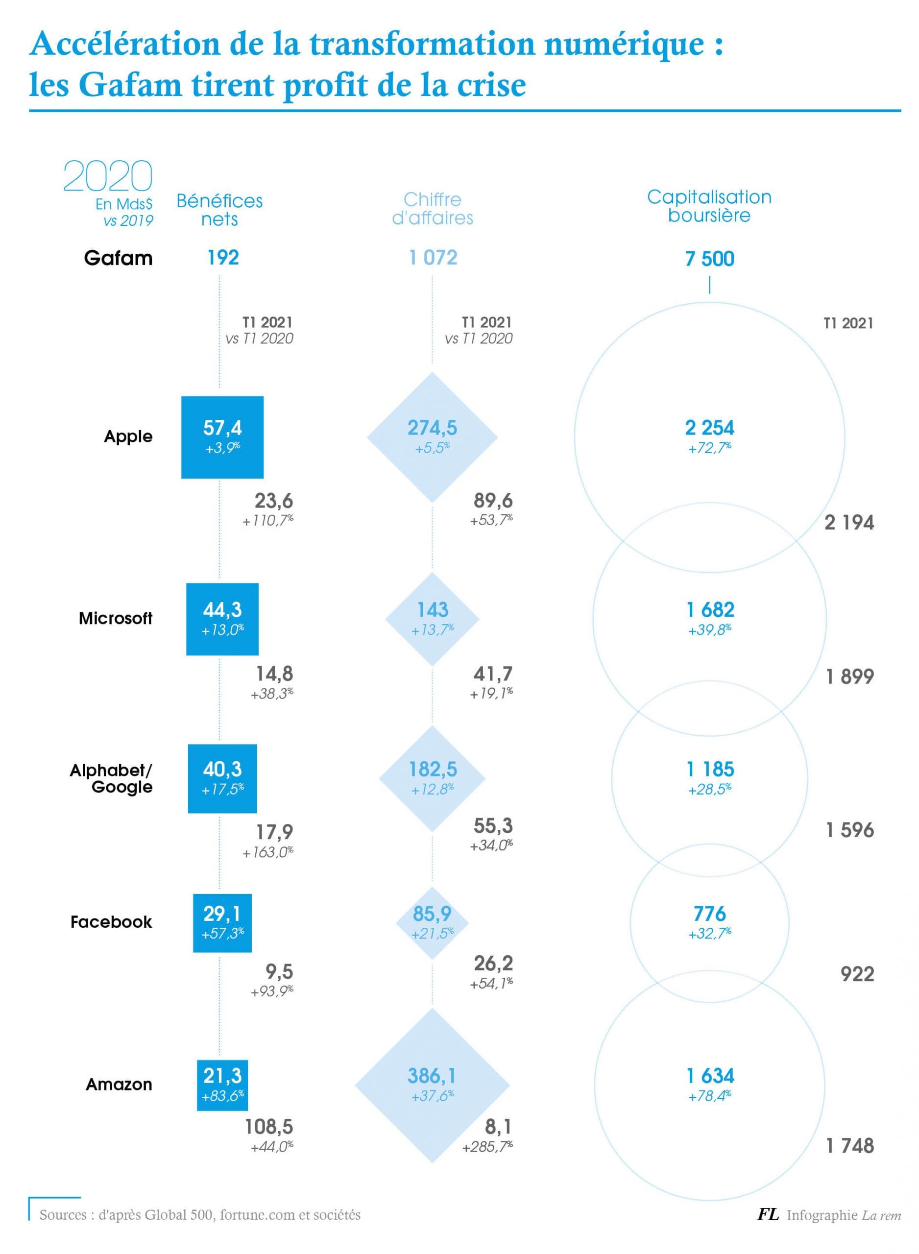 Les acteurs globaux Accélération de la transformation numérique : les Gafam tirent profit de la crise Accélération de la transformation numérique : les Gafam tirent profit de la crise