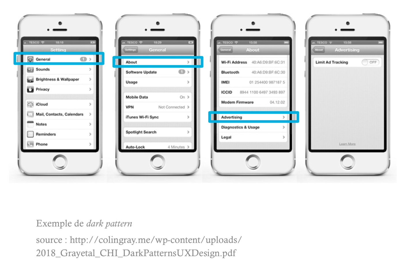 - celles dont le but est de rendre l’exécution d’une action difficile ou de tromper l’utilisateur, ce que l’on appelle en anglais les dark patterns.