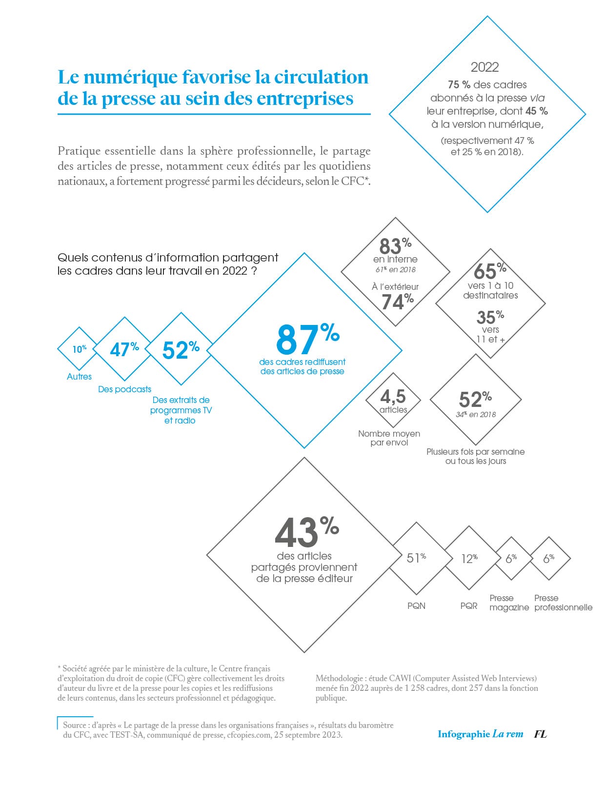 Pratique essentielle dans la sphère professionnelle, le partage des articles de presse, notamment ceux édités par les quotidiens nationaux, a fortement progressé parmi les décideurs, selon le CFC*.