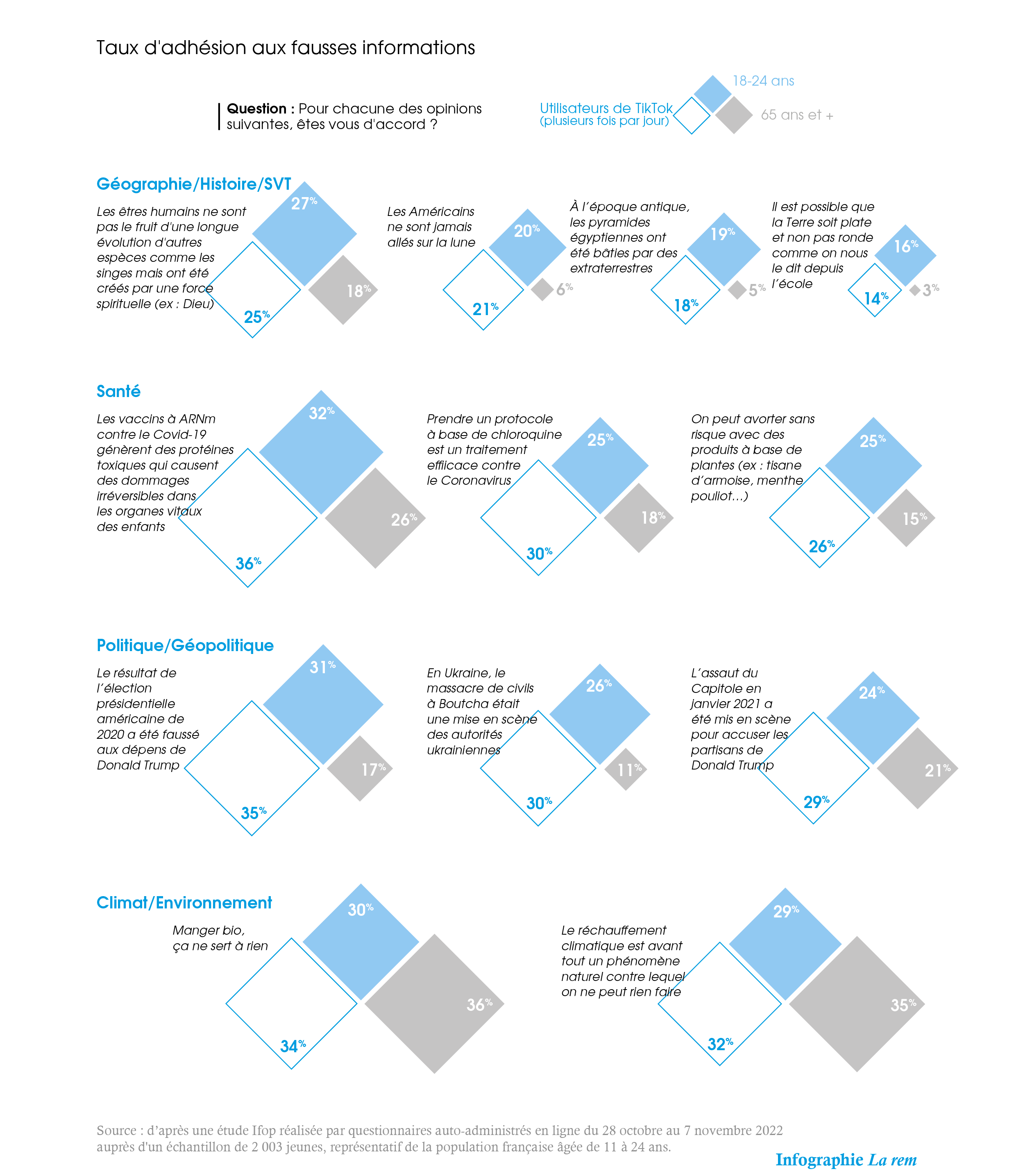 - « Enquête sur la mésinformation des jeunes et leur rapport à la science et au paranormal à l’heure des réseaux sociaux », étude Ifop pour la fondation Reboot et la Fondation Jean-Jaurès, jean-jaures.org, 6 décembre 2022.