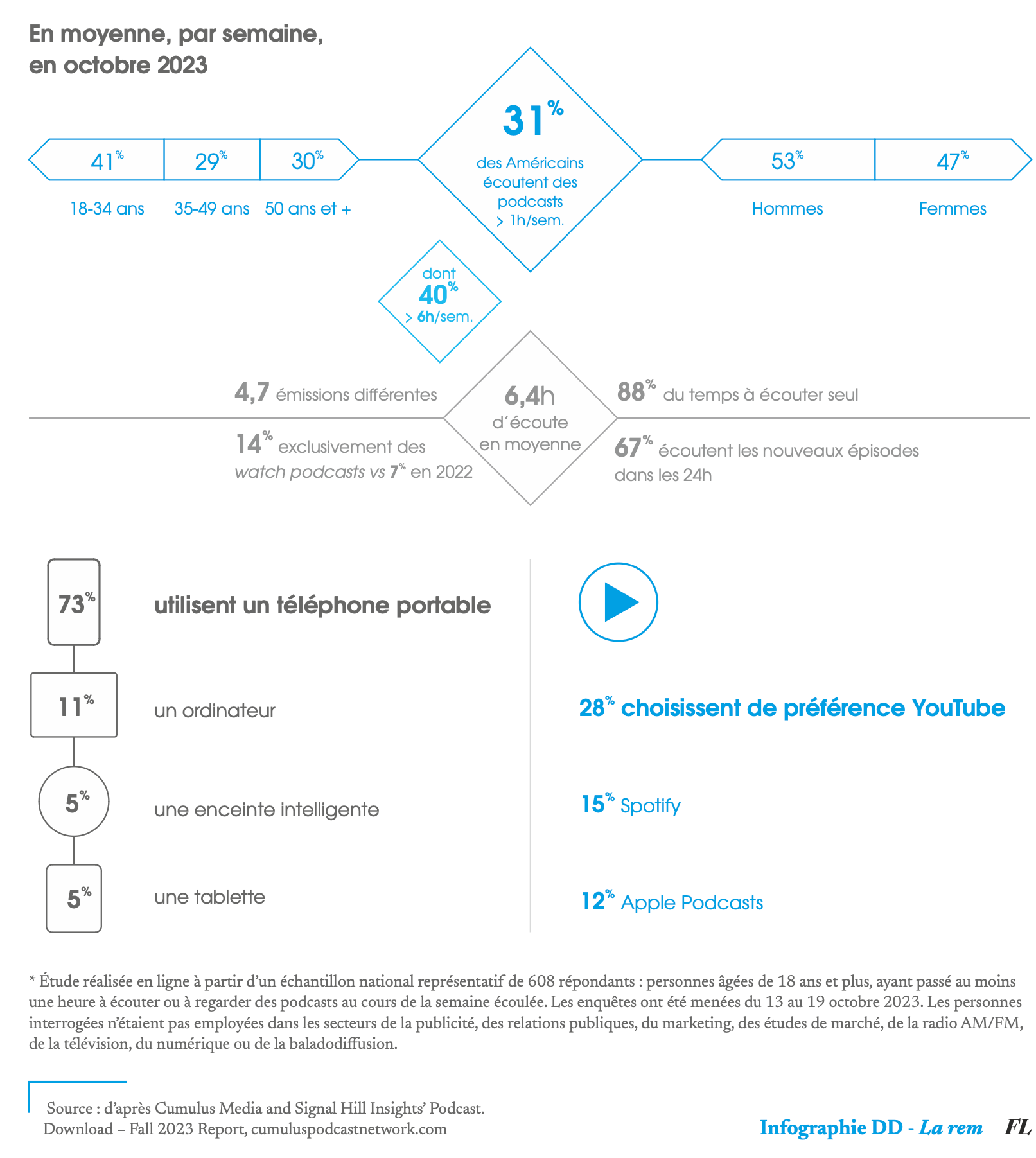 Source : d’après Cumulus Media and Signal Hill Insights’ Podcast. Download – Fall 2023 Report, cumuluspodcastnetwork.com